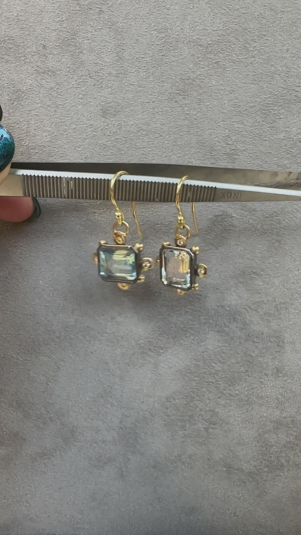 Octavie Earrings - 18ct Solid Gold & Black Silver -Topaz & Diamonds - Simonetta's Jewels Reimagined